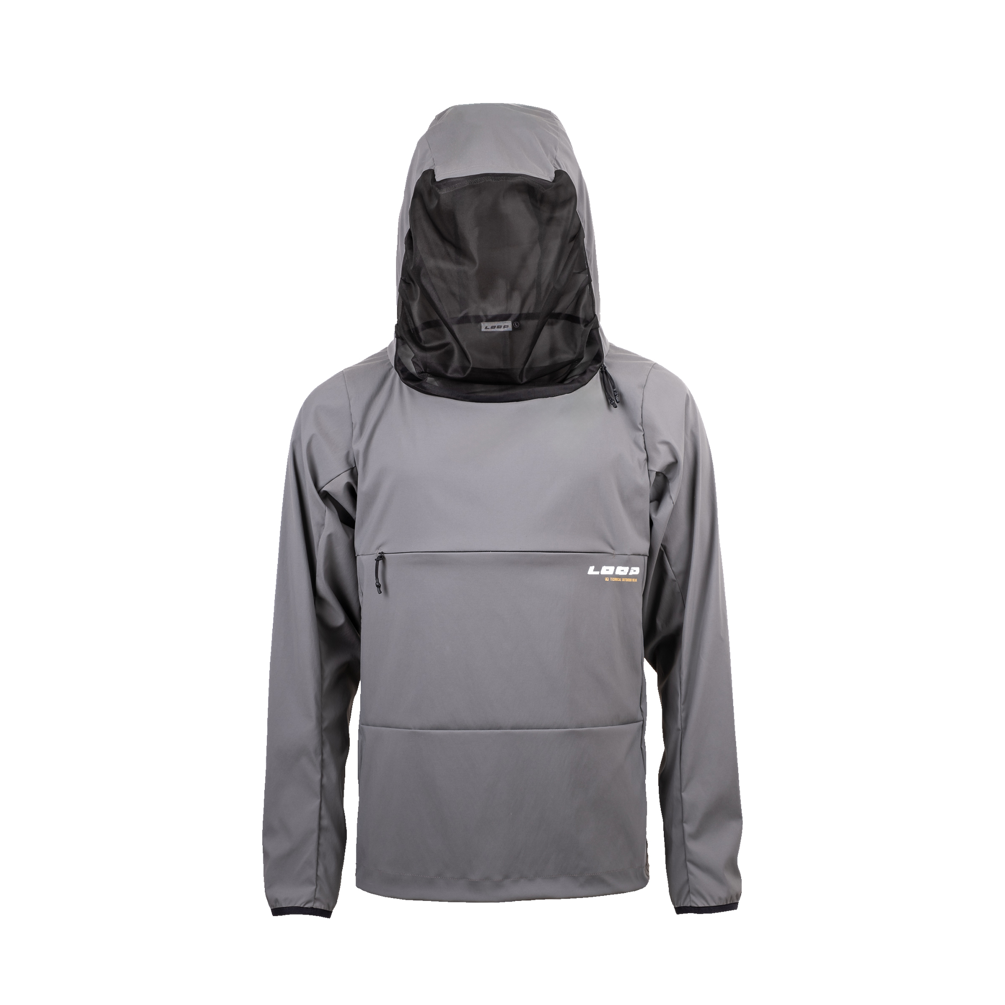The carefully designed hood and mesh front enables you to quickly and easily zip the system closed and protect you away from the midges and mosquitos. The design fits perfectly over a cap or hat and when closed the mesh sits a comfortable distance from your face. The two way zipper in the neckline allows the hood to be closed around the neck when the hood is down. The tight elastic hem and sleeves provide a comfortable fit keeping in the warmth and keeping the insects out. The zippered large chest utility pocket allows you to carry your essentials and access them without taking off the insect defence system.